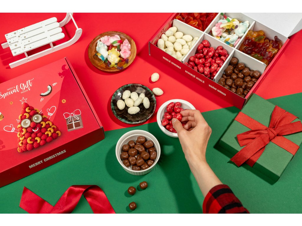 Toate aceste bunătăți sunt așezate într-o cutie elegantă, gata să fie oferită cadou sau să îți aducă ție o mică bucurie.