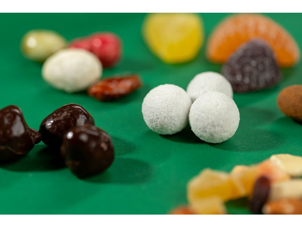 | Sloení: | Ciocolată albă și cu lapte (conține LAPTE, SOIA), MIGDALE, CAJU, ALUNE DE PĂDURE, nucă de cocos, fructe uscate (zmeură, cireșe, ananas, papaya, stafide), zahăr, sirop de glucoză, grăsimi vegetale (palmier, shea, sare, mango), arome, coloranți, agenți de glazurare, acizi (citric, lactic), conservant: SO₂. |